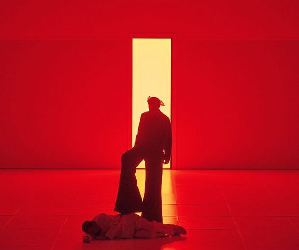 Triumphierende Geste: Jago stellt seinen Fuß auf den kauernd gekrümmten Körper Otellos. Foto: Martin Sigmund/p